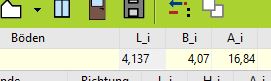 Im Raumbuch rechnet EVEBI die Fläche mit der gerundeten Länge aus.
