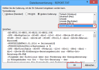 Auf welche Codierung muss ich meinen Beratungsbericht einstellen, um ihn in Word korrekt darstellen zu können?