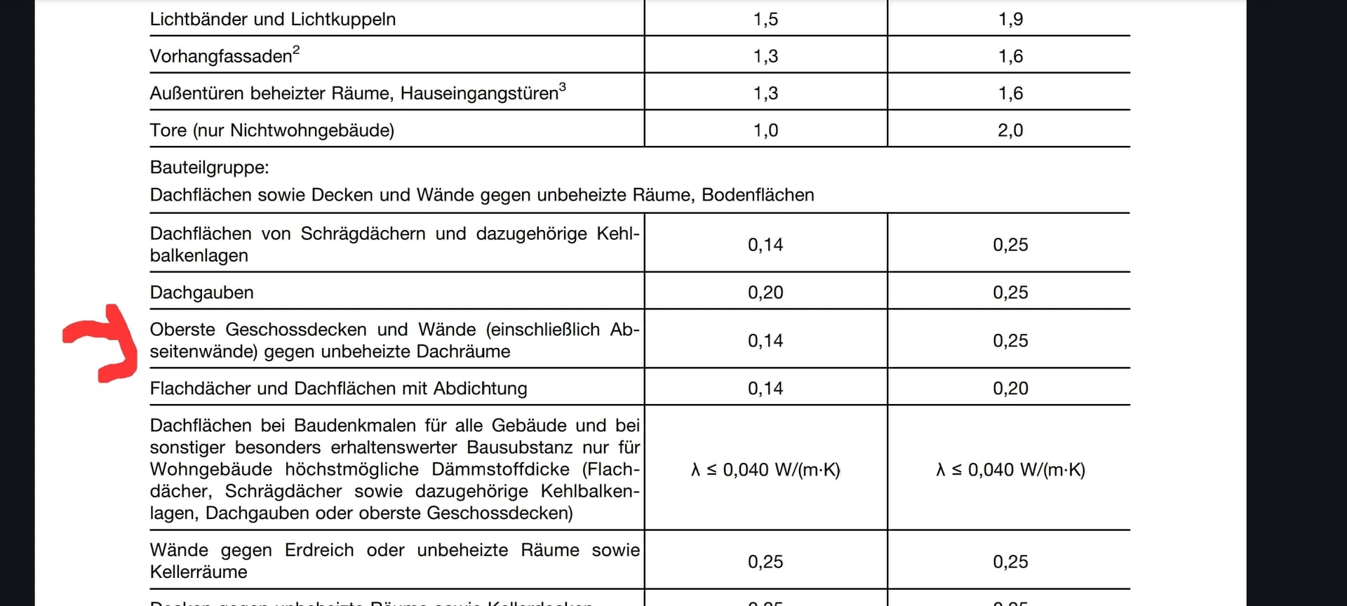 Hi, ich habe gerade auf meinem Datenblatt zur QS festgestellt, dass Evebi dort einen U-Wert nach BEG von 0,14 für Wände gegen unbeheizten Dachraum als Ziel angibt. Stimmt das? Das sind doch nur 0,25?