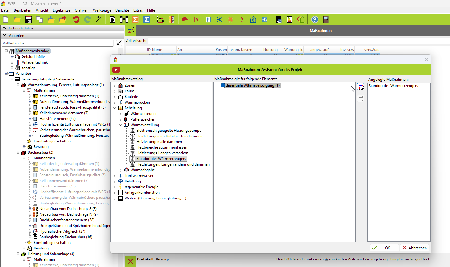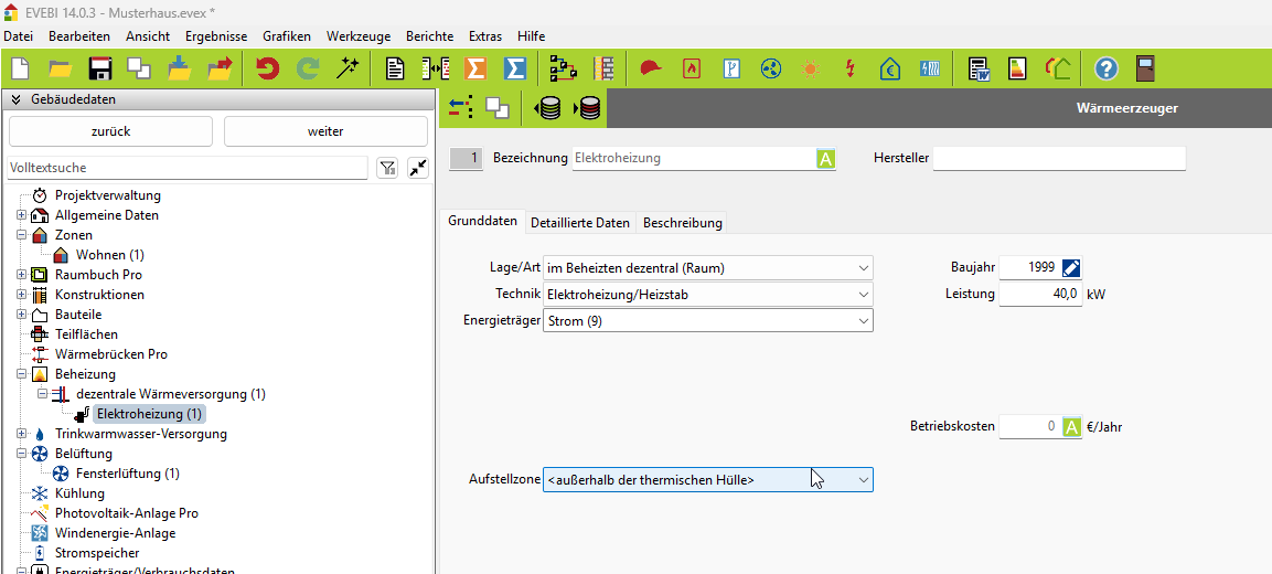 Anschliessend erzeuge ich die Wärmeerzeuger. Soweit so gut.