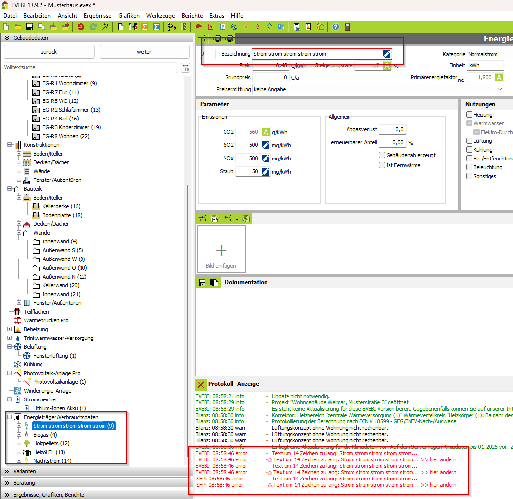 Der Bug, dass die Fernwärme nicht als regenerativ erkannt wird, ist mit der gestern erschienenden Version 13.10.0 behoben worden. Die Länge des Energieträgers hingegen ist weiterhin durch die Druckapplikation bergrenzt, sodass die automatischen Bezeichnungen aus EVEBI u.U. zu lang sein können (da unserer Software nicht nur iSFp erstellt, sind die Texte, Bezeichnungen und Bilder nicht ausschließlich auf das Format des iSFP angepasst).
