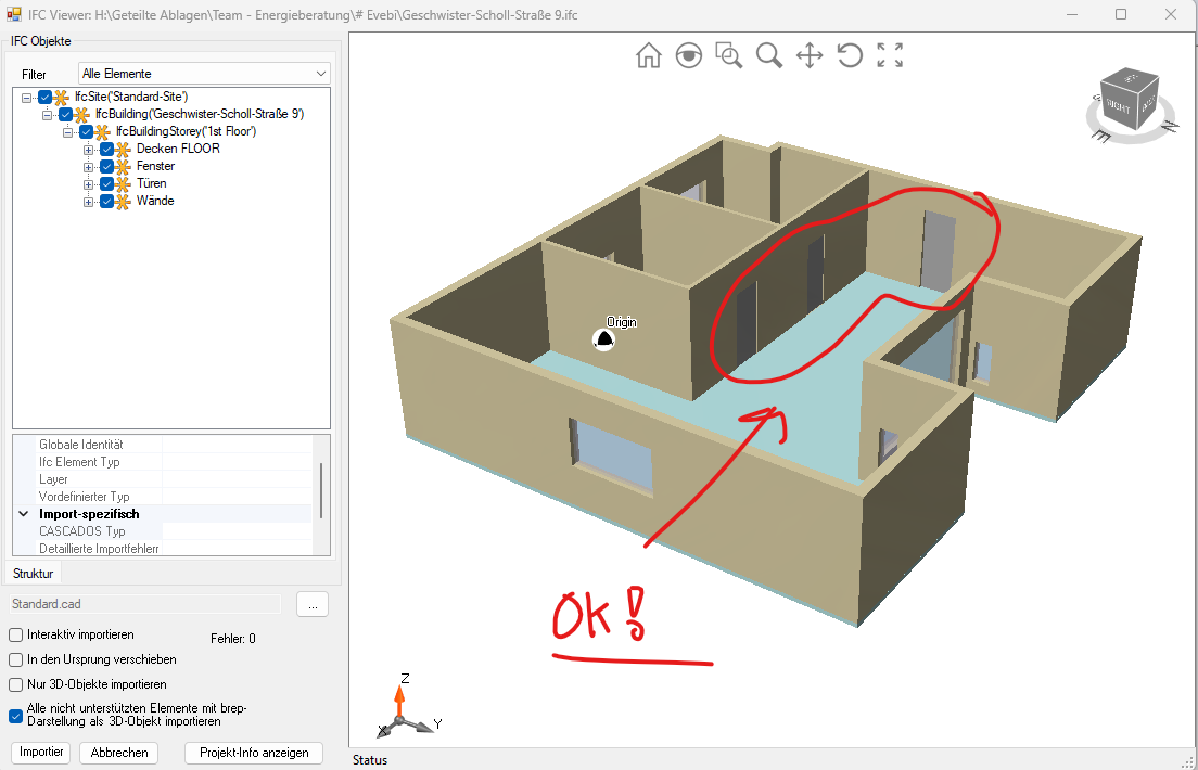 Hallo, interessant wäre, wie sich die ifc-Datei mit der aktuell veröffentlichten E-CAD Version 6.1.1424 verhält. Da wurde wieder etwas am ifc-Import gebaut.