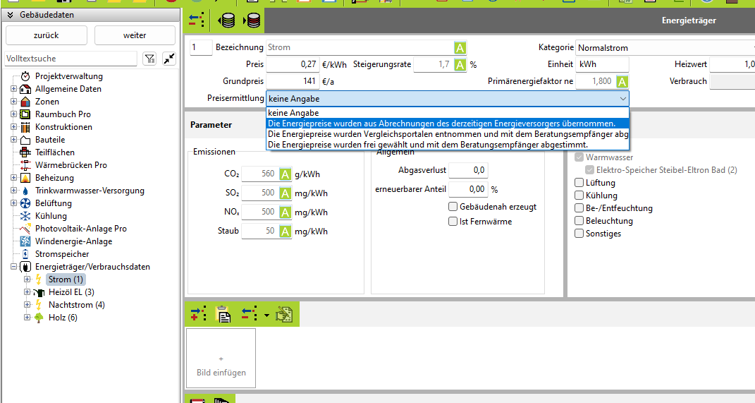 Bei Energieträger/Verbrauchdaten unter Gebäudedaten?