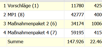 Wahrscheinlich daher rührend, dass ich ein Maßnahmenpaket einfügen musste, weil ich im ersten Paket Maßnahmen aus mehr als 4 unterschiedlichen Kategorien hatte…