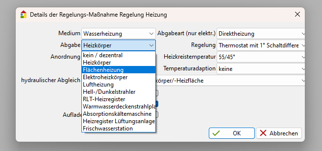 Legen Sie die Maßnahme „Regelung Heizung“ an und stellen Sie die Art der Wärmeabgabe und die Vorlauftemperstur um. Weitere Angaben sind für den Heizungstausch nicht erforderlich. Einen zweiten Heizkreis anzulegen ist im Bereich der Maßnahmen aktuell leider nicht möglich. Hier würde ich im Istzustand zwei Heizkreis mit Heizkörpern anlegen und bei dem einen Heizkreis dann in den Maßnahmen die Heizkörper, wie oben beschrieben gegen eine FBH tauschen.