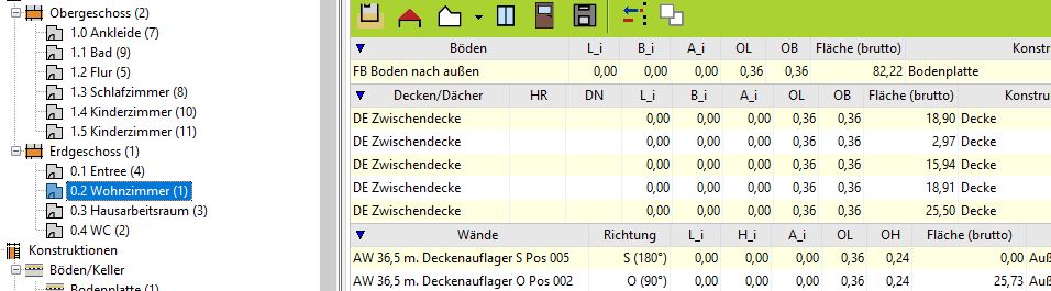 Wenn Sie ein Projekt aus ECAd importieren, werden immer nur die Bruttoflächen importiert. Dies reicht für die Heizlastberechnung völlig