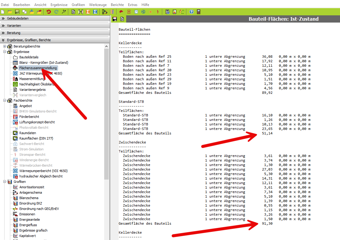 Bei großen Projekten mit vielen verschiedenen Bauteiltypen (besonders Wände und Fenster) besteht leicht die Gefahr, dass bei der Eingabe etwas vergessen wird. Gibt es die Möglichkeiten, die Summe z.B. aller Fenster auszugeben, um diese mit einer Massenaufstellung zu vergleichen?