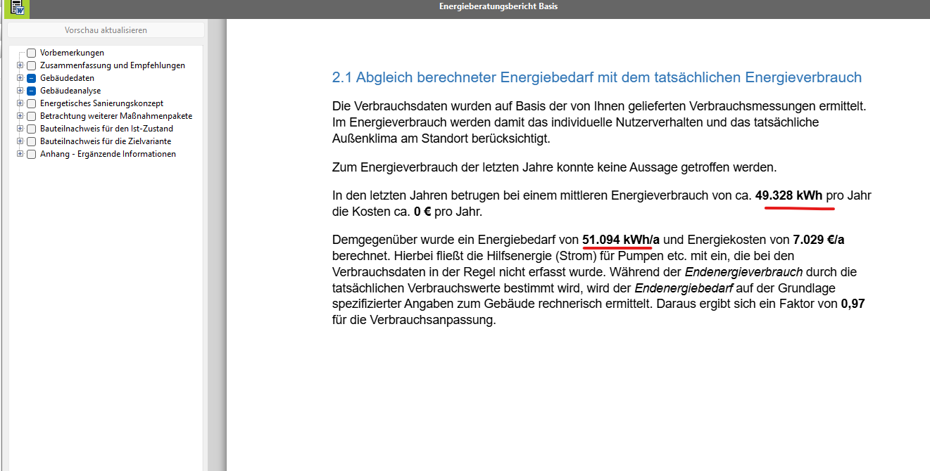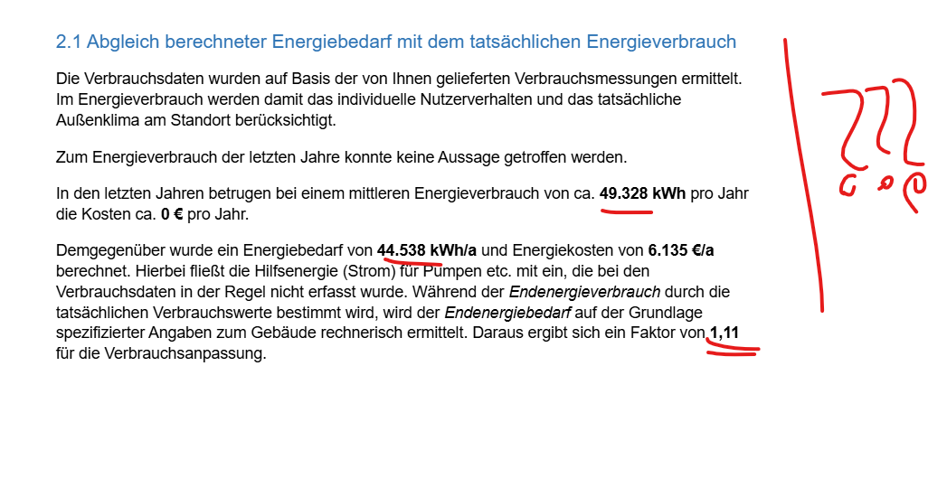 2.3 Und was gibt jetzt der Bericht aus, in dem natürlich das Thema Verbrauchsanpassung (wenn nicht das wichtigste Thema überhaut was man dem Kunden vermitteln muss)…? Für mich völliger Blödsinn. Kann ich so nicht dem Kunden vermitteln.