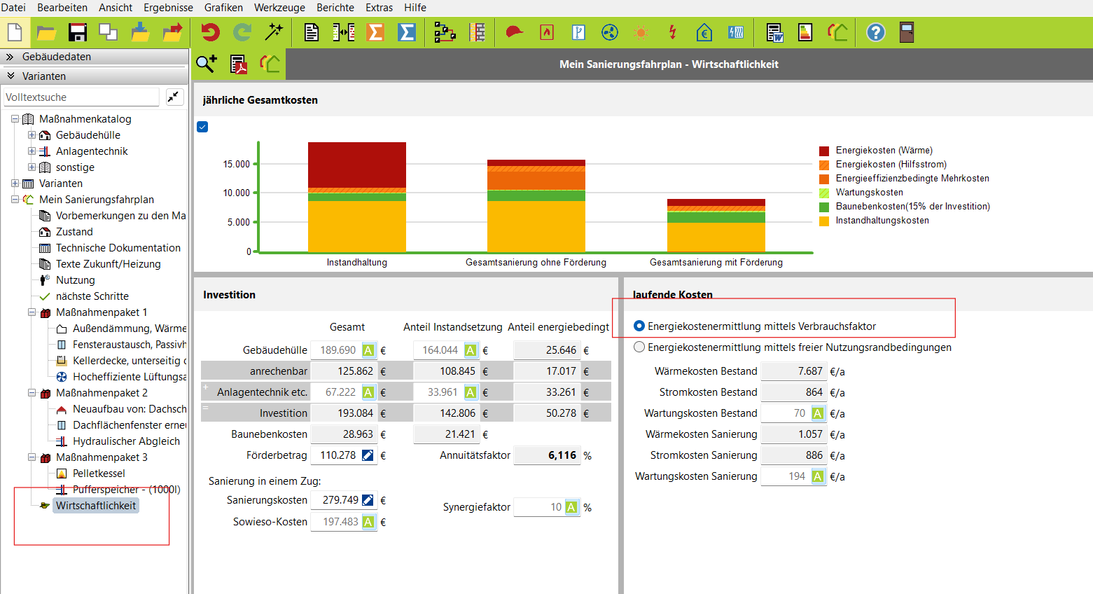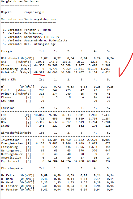 Diese Anpassung passt den Faktor für jeden Sanierungsschritt automatisch an die verbesserte Gebäudehülle an. Beim intensiven Lesen im Forum gestern abend, wurde vom evebi Team an andere stelle darauf verwiesen das dies am besten manuell durch eine Maßnahme (Temperatur anpassen" in jeden Sanierungschritt abgebildet werden kann.