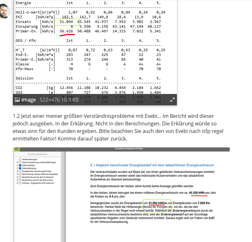 1.2 Jetzt einer meiner größten Verständnisprobleme mit Evebi… Im Bericht wird dieser jedoch ausgeben. In der Erklärung. Nicht in den Berechnungen. Die Erklärung würde so etwas sinn für den Kunden ergeben. Bitte beachten Sie auch den von Evebi nach isfp regel ermittelten Faktor! Komme darauf später zurück.